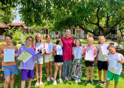 В центре программы — английский язык: ежедневные занятия с носителями, постоянная языковая практика в играх и творческих проектах, просмотр фильмов на английском и участие в собственном видеопроекте, который дети создают от сценария до финального ролика. Такой формат помогает ребятам говорить уверенно, расширять словарный запас и применять язык в реальных ситуациях, пока они путешествуют, исследуют древние руины, ходят в походы и наслаждаются морскими приключениями.
